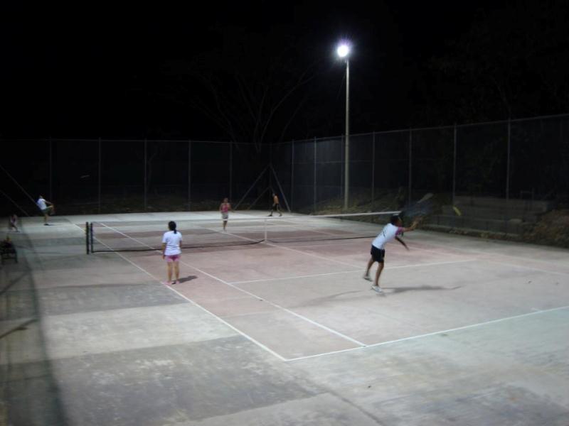 La cancha de tenis tiene alumbrado profesional que permite usarla en la noche. - CANCHA DE TENIS :