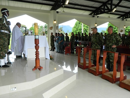 Al finalizar la misa el Señor Coronel Jefe de Estado Mayor se dirigió a los asistentes dando cumplimiento al acto y presentando disculpas a los familiares de la víctima, quienes de forma simbólica recibieron un ramo de flores, culminando así la actividad.