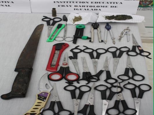 En las acciones realizadas se logró la incautación de elementos, corto punzantes tales como, tijeras, bisturís, compás, navajas, sustancias alucinógenas y demás elementos no permitidos dentro de la institución educativa.