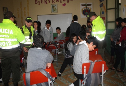 Policías expertos en el tema de infancia y adolescencia, con el apoyo del ICBF,Comisaria de familia, personería municipal y rectores de los centros educativos, realizaron la intervención delas instituciones educativas, Normal Superior, Champagnat, Seminario Misional, Fray Bartolomé de Igualada en el municipio de Sibundoy.