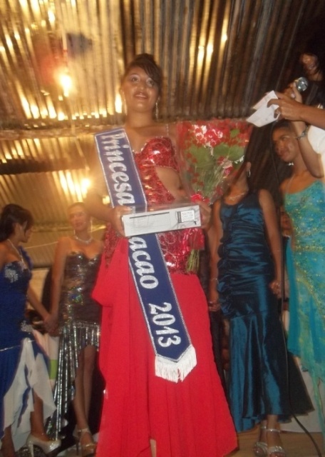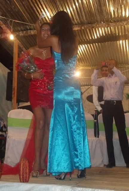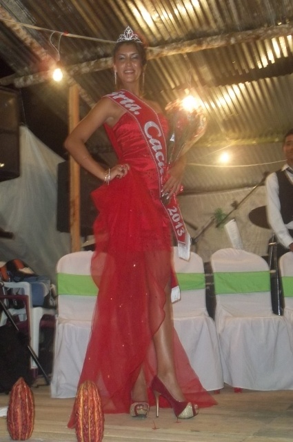 La señorita Kelly Álvares reina del primer reinado cultural del cacao realizado en 2011 fue la encargada de entregar su corona a Diana Yuliza Pantoja, Reina del Cacao 2013.