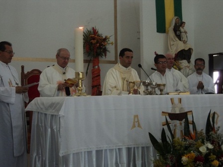 Tras la lectura del Mandato por el cual se crea el Vicariato Apostólico “Puerto Leguízamo – Solano” se hace entrega del Báculo por parte de Monseñor Flavio Calle Zapata, Arzobispo Metropolitano, a Monseñor Joaquín, y lo invita a tomar posesión de la Catedral, en presencia de los señores Arzobispos, Obispos, Sacerdotes y comunidad asistente al acto; presidiendo la celebración Eucarística, signo de comunión y unión fraterna.