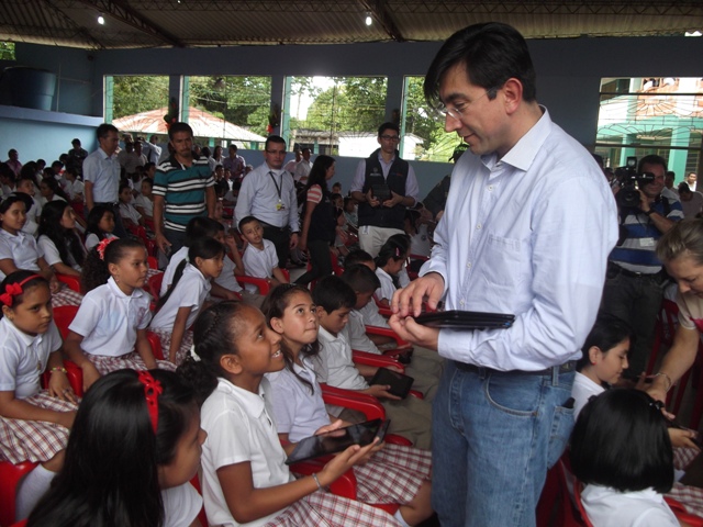 La esposa del Presidente de los Colombianos Juan Manuel Santos, hizo entrega de las primeras 1.800 tabletas y computadores de los 4 mil asignados para el Putumayo en los municipios de Orito, Valle Guamuez, y Puerto Asís, Esta entrega de Tabletas hace parte del Programa Presidencial Computadores para Educar del Ministerio de Tecnologías de la información y las comunicaciones.