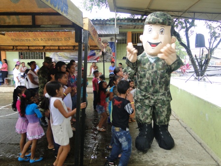 De igual forma los niños presentes se entretuvieron con la animación del GEOS, quien con el Lancita hicieron ejercicio, participaron en diferentes juegos lúdicos y disfrutaron de dulces, galletas, saltarín y más.
