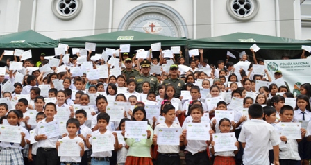 Durante este evento un total de (864) niños, niñas y adolescentes de (6) centros educativos de la capital Putumayense, recibieron el certificado que los acreditan como miembros de una nueva sociedad comprometida con el sano desarrollo y convivencia del municipio, después de haber participado activamente en el programade Educación para la Resistencia al Uso de las Drogas y la Violencia (DARE), que viene adelantando la policía en esta zona del país.