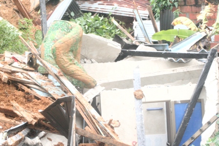 Un alud de tierra registrado en el barrio Palermo al occidente de la ciudad en la madrugada de hoy arraso con tres viviendas y provocando la desaparición de tres personas una mujer de 39 años de edad y dos menores de 9 y 5 años respectivamente.