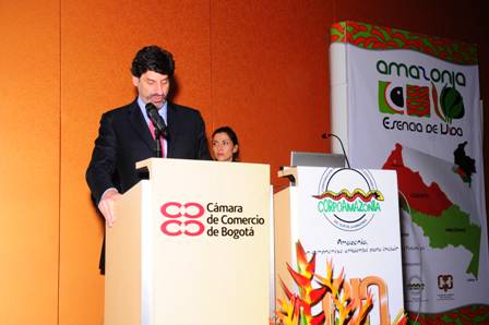 El Director General de Corpoamazonia William Mauricio Rengifo Velasco, en su discurso de bienvenida, hizo un recorrido por los principales logros que la Corporación ha obtenido en ejecución del programa de Mercados Verdes. Manifestó que “ha sido una prioridad la gestión de la Diversidad Biológica y los Servicios de los Ecosistemas, a través del fortalecimiento de los mecanismos para la identificación y promoción de sistemas productivos sostenibles y la aplicación de estrategias de conservación de la biodiversidad. Por eso incluimos este componente en nuestro Plan de acción institucional 2012-2015, amazonia un compromiso ambiental para incluir, que se articulado a los planes de desarrollo de los departamentos de Amazonas, Caquetá y Putumayo y a sus agendas Internas de Productividad y Competitividad”.