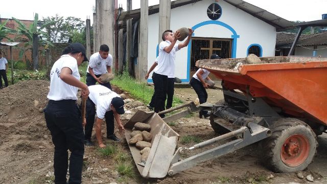 Esta actividad contó con el apoyo de una maquina aplanadora y recolectora de escombros, de igual modo se pudo sacar de la zona, gran cantidad de gigantescas rocas que hace varios años estaban a las afueras de la capilla y arena, recolección de elementos de desechos.