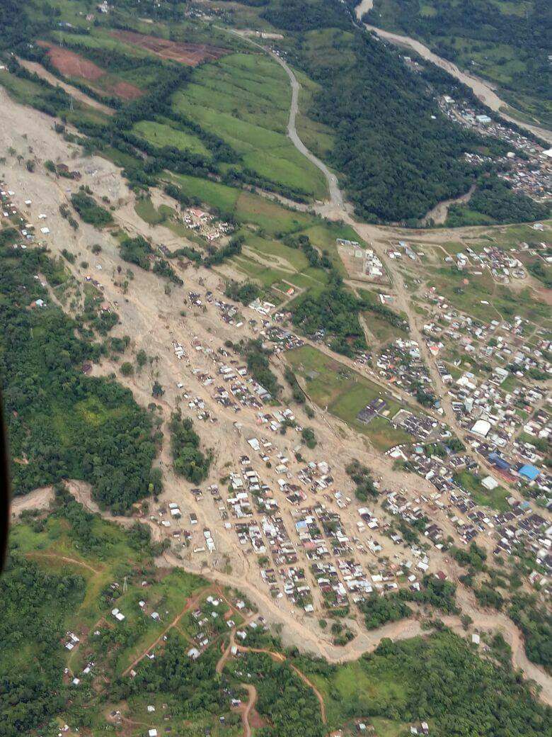 Imágenes aéreas de la magnitud del desastre en Mocoa abril 1, 2017 por director Rio Sangoyaco, sector Plaza de Mercado, Terminal de Transportes, B. Independencia Rio Sangoyaco, Desembocadora Rio Mocoa, B. Independencia Rio Sangoyaco, sector Carcel de Mocoa, San Miguel, Los Pinos Publimayo Publimayo