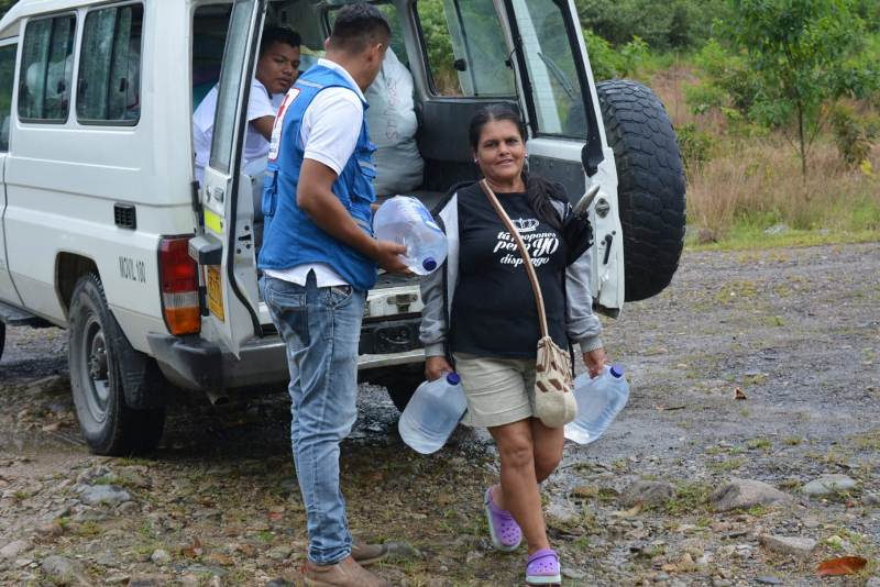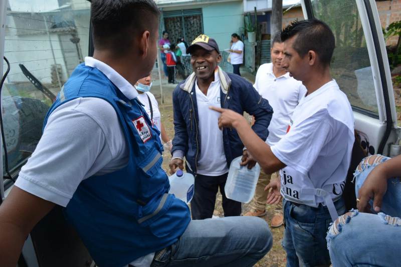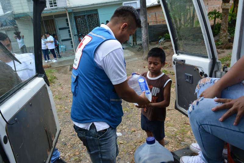 Luego, aprovechando su experiencia y su conocimiento, la Cruz Roja Colombiana, entidad experta en ayuda humanitaria y atención prioritaria de emergencias se encarga de entregar el agua en las zonas donde haya una situación crítica por desabastecimiento de agua, como en este caso, Mocoa, Putumayo.