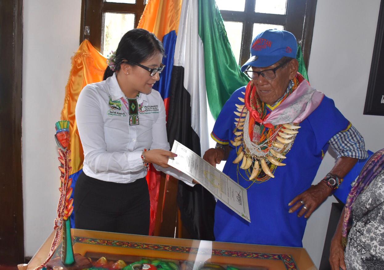 “Reconocer y exaltar el legado cultural y espiritual único del Taita Querubín Queta Alvarado, al aportar mediante su vida, sus acciones, su trabajo y sus enseñanzas a la conservación de las tradiciones ancestrales del Departamento del Putumayo y a su ardua labor para que estas sigan vigentes de generación en generación, otorgando reconocimiento nacional e internacional a este Departamento, convirtiéndolo en eje fundamental de la espiritualidad y las costumbres ancestrales”, fueron las palabras de la Gobernadora del Putumayo, Sorrel Aroca, en la entrega de condecoración por decreto al Taita Querubín Queta Alvarado.
