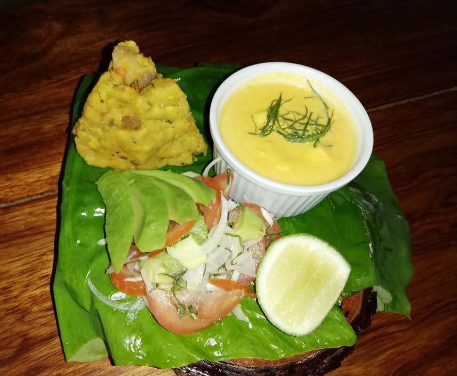 Se pudo apreciar Ceviche de Pirarucú, Tacacho de Pirarucú, Palmito, Salsa de Sacha Inchi, Ensalada camionera, Pirarucú en salsa de Canagucha, Yuca amarilla, Aceite de Sacha Inchi, Filete de Bagre al Vapor, Ají y Puré de Yota.