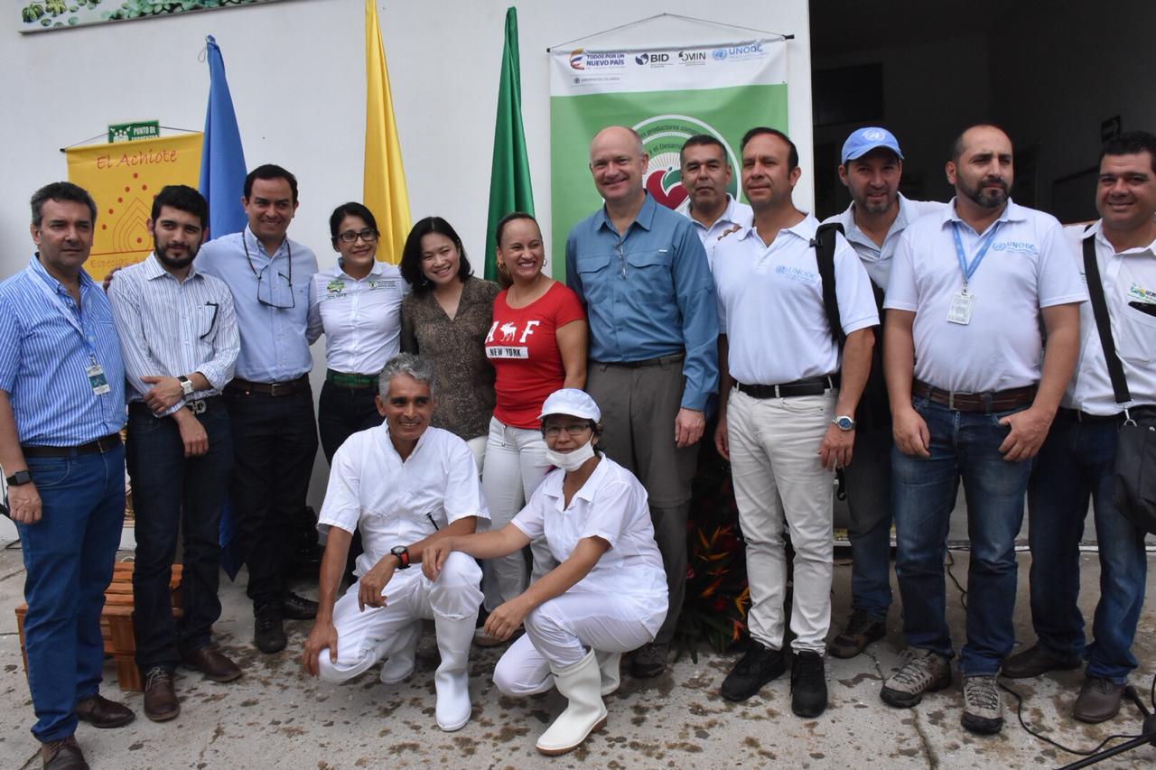 El evento se realiza con la presencia de la Gobernadora, Sorrel Aroca Rodríguez; la Directora de Operaciones de la Oficina de las Naciones Unidas contra la Droga y el Delito – UNODC; Miwa Kato, el representante UNODC en Colombia; Bo Mathiasen; el Jefe del Área de Desarrollo Alternativo, Guillermo García, productores y representantes de la Organización.