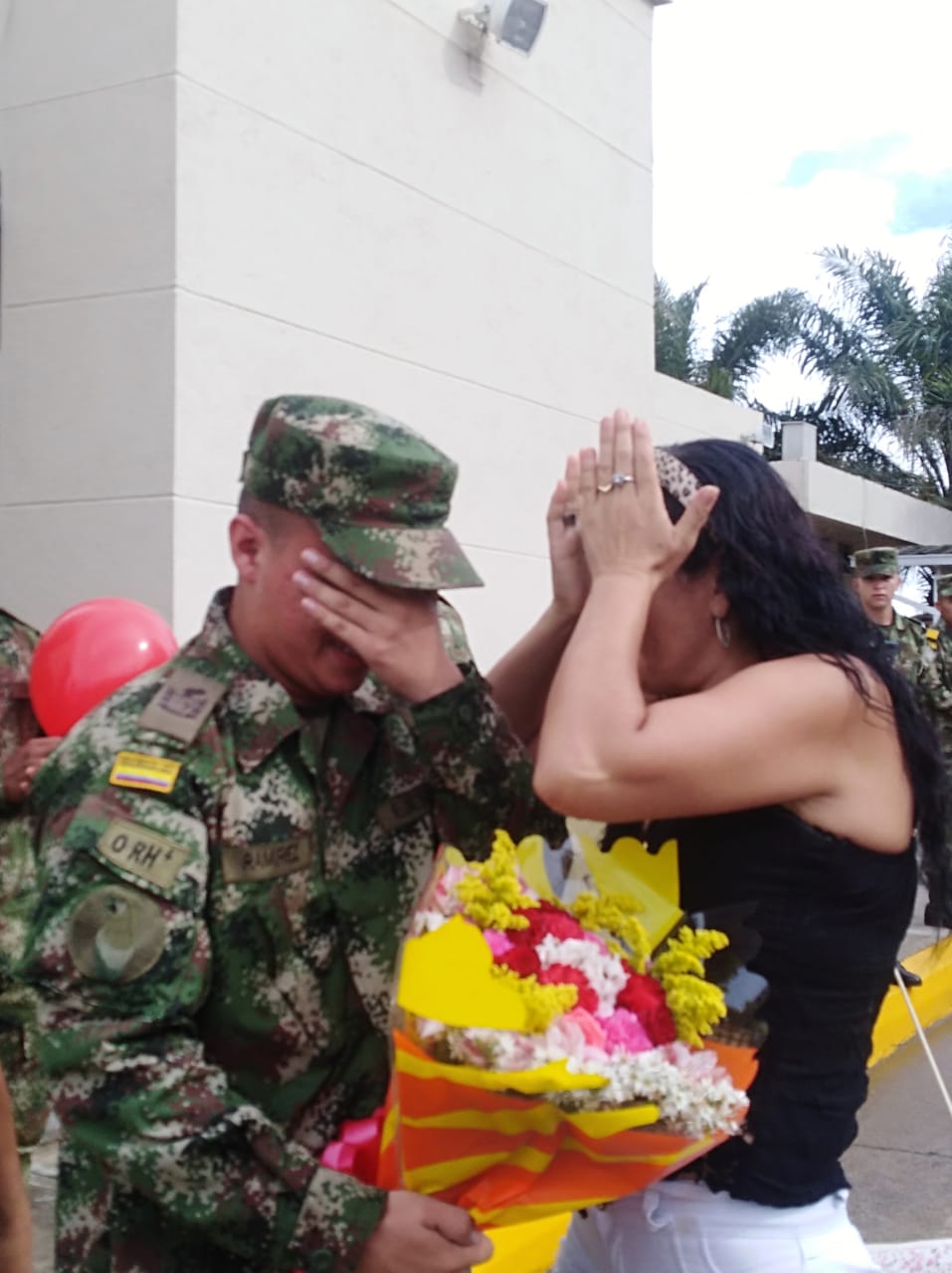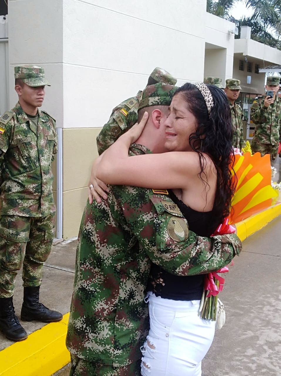 “General Yuber Aranguren, hoy una madre ya no llora por la pérdida de un hijo en sus filas, hoy una madre llora de la felicidad que el ejército le devuelve a su hijo. Gracias de corazón muchas gracias. Se llegó la hora, no pude dormir mi corazón se me quiere salir del pecho, Dios los bendiga”. Expreso mientras abrazaba entre su pecho el ramo de flores que su hijo le regalo en el momento del encuentro.
