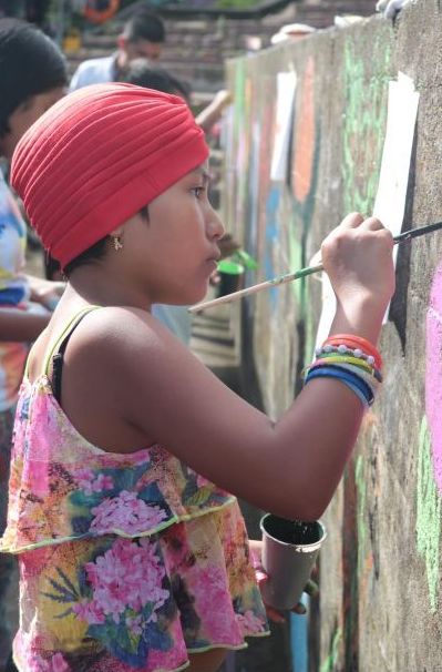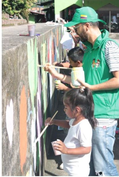 En las jornadas se capacitó y orientó la realización de dibujo: técnicas, delineado y creación de personajes, al igual que en pintura: color, difuminado, diferentes tipos de trazos y demás conocimientos que permitieron a los niños y niñas desarrollar sus capacidades artísticas, que se vieron plasmadas en la realización del mural.