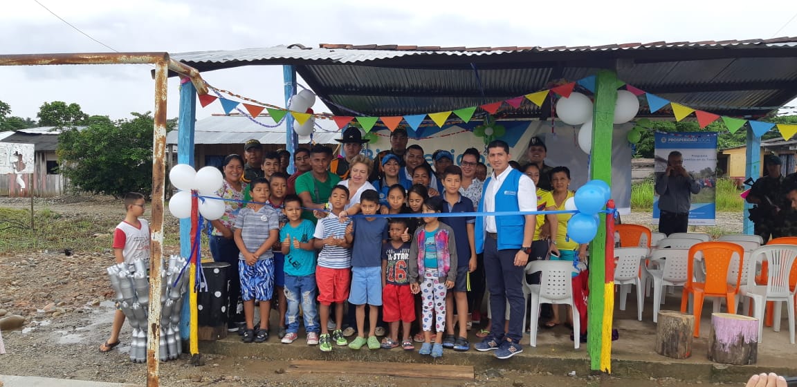 La obra beneficia a 40 niños y niñas de la vereda La Isla que ahora cuentan con un escenario recreativo.
