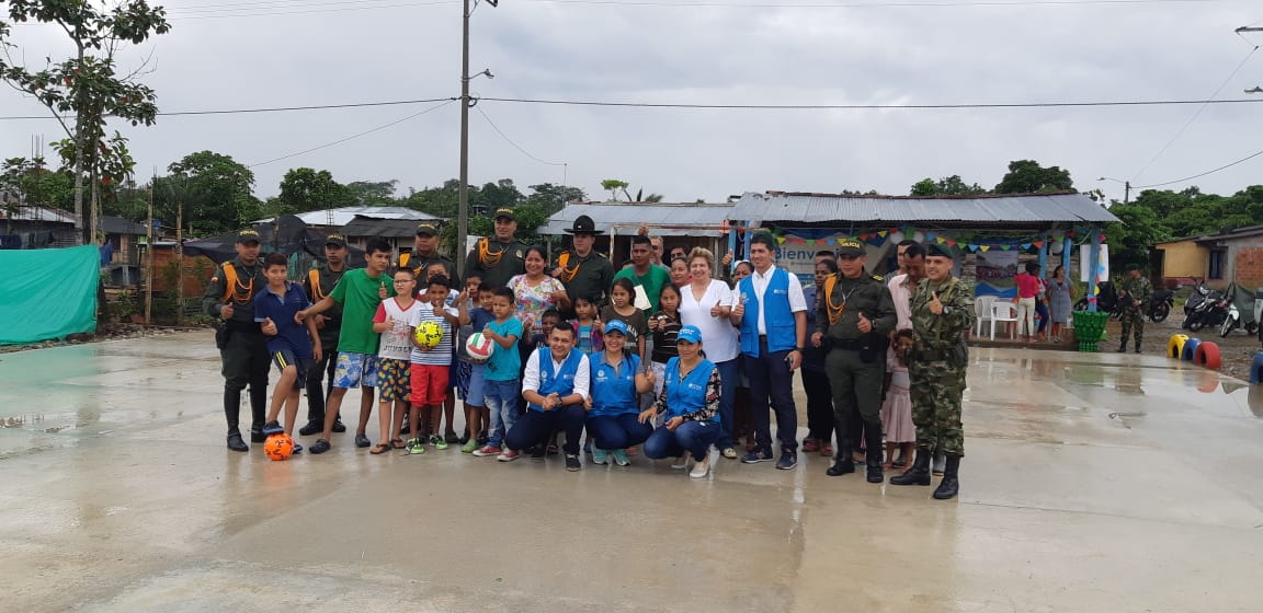 La Sexta División del Ejército Nacional con el Batallón de Operaciones Terrestres n°.20 de la Vigésima Séptima Brigada de Selva en ejecución del eje estratégico Cooperación y Desarrollo del Plan Victoria Plus, así como de la iniciativa Fe en Colombia- Pasión Putumayo, en articulación con Prosperidad Social y la comunidad, construyeron una placa deportiva para niños y niñas en la vereda La Isla del municipio de Puerto Caicedo.