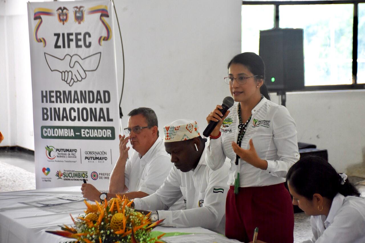 La Gobernadora del Putumayo, Sorrel Aroca Rodríguez, preside el ‘Encuentro Regional de Autoridades Binacionales’, desarrollado en el municipio de Orito, con la finalidad de mejorar las relaciones del Hermanamiento Colombo Ecuatoriano a través del fortalecimiento interno en el ámbito jurídico, de planeación a partir de las cuencas hidrográficas que componen nuestra Zona de Integración Fronteriza – ZIFEC.