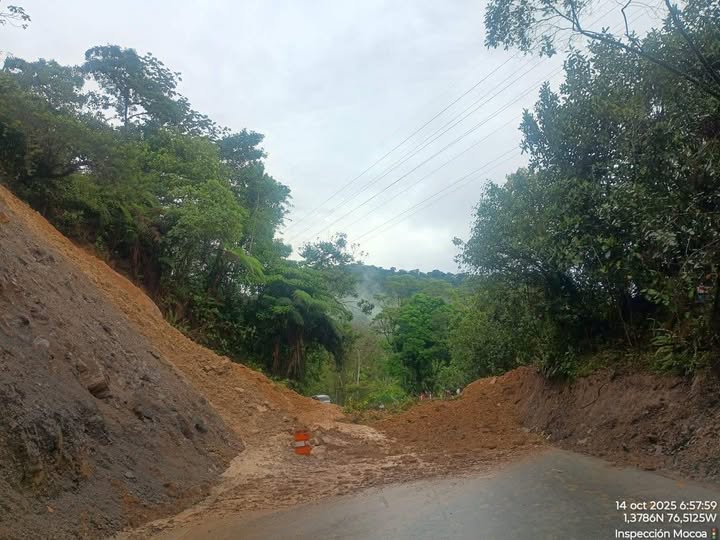 La consecionaria Ruta al Sur mediante comunicado en redes sociales informa a los usuarios de la vía Mocoa – Pitalito que se presentó cierre total en el sector Verdeyaco (PR 35+220 – RN 4503 UF6), tramo Santa Rosa – Mocoa, debido a un deslizamiento con caída de lodo sobre la calzada.