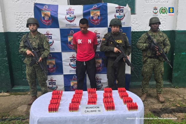 Los hechos ocurrieron el pasado 12 de octubre, durante un procedimiento de registro y control, adelantado por la Policía y la Armada Nacional, en el muelle, donde se capturó en flagrancia a este hombre, mientras transportaba en una lancha 20 cajas con 500 cartuchos calibre 16, los cuales estaban ocultos en la embarcación.