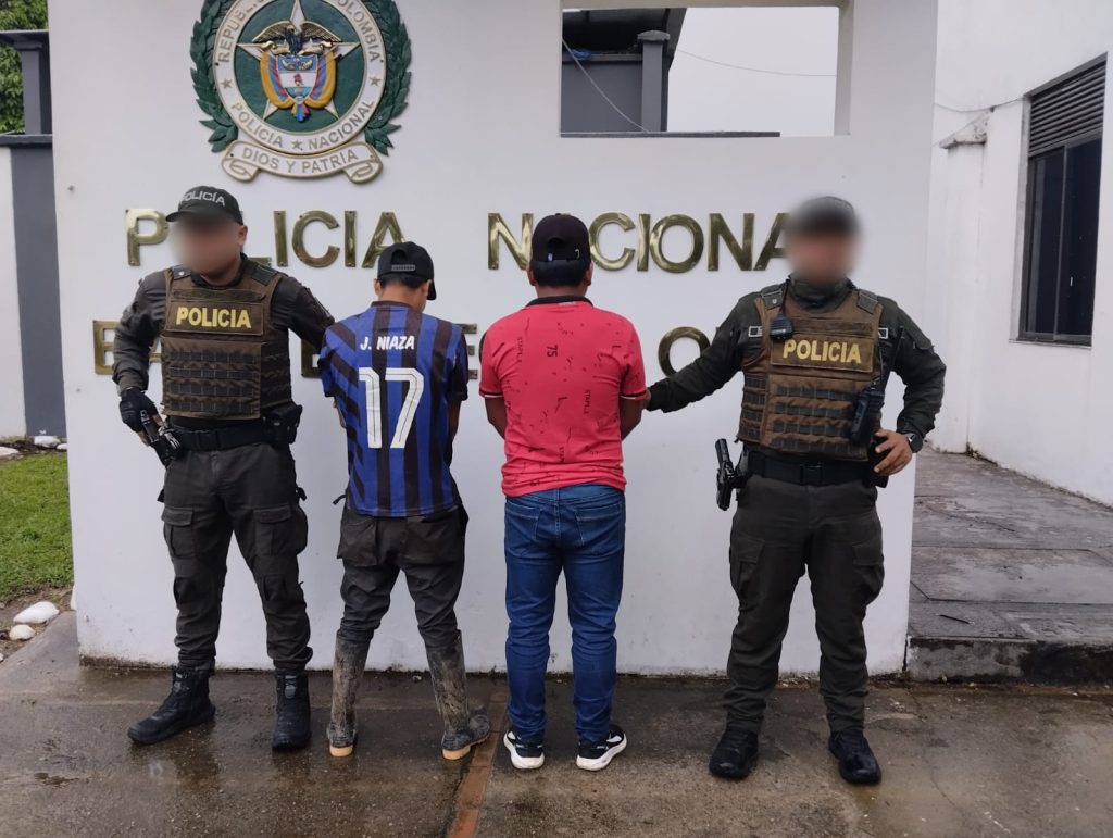 En un operativo de control y registro rutinario, la Policía Nacional, a través de las unidades del Modelo de Servicio de Policía Orientado a las Personas y los Territorios, logró la captura en flagrancia de dos hombres de 26 años en el barrio Pomos, municipio de Orito, Putumayo.