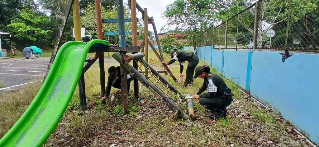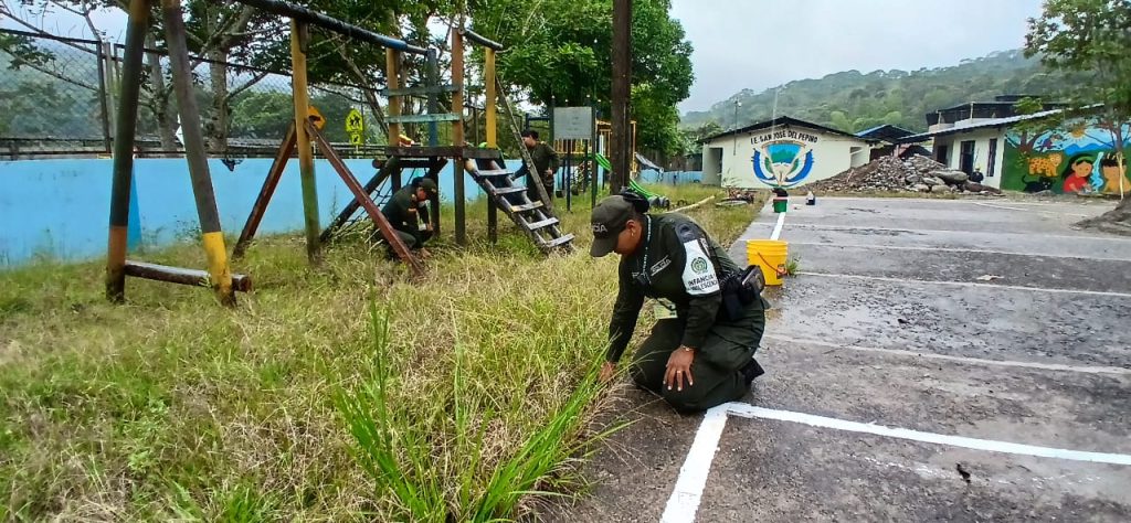 La Policía Nacional, a través del Grupo de Protección a la Infancia y Adolescencia, realizó una jornada de recuperación y embellecimiento del parque infantil en la Institución Educativa Rural San José del Pepino, en el municipio de Mocoa.