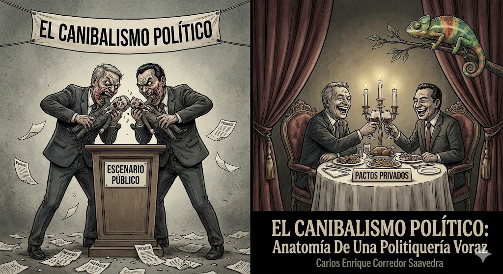 En el sórdido escenario de la politiquería nacional —ese territorio donde la ética suele ser una molestia y la coherencia un lujo innecesario— se ha normalizado una práctica que bien podría llamarse canibalismo político. No se trata de una figura exagerada ni de un simple recurso literario: es la descripción descarnada de un sistema donde los actores del poder se devoran entre sí en público, solo para pactar en privado; donde hoy se atacan con ferocidad y mañana comparten mesa, café y complicidades.