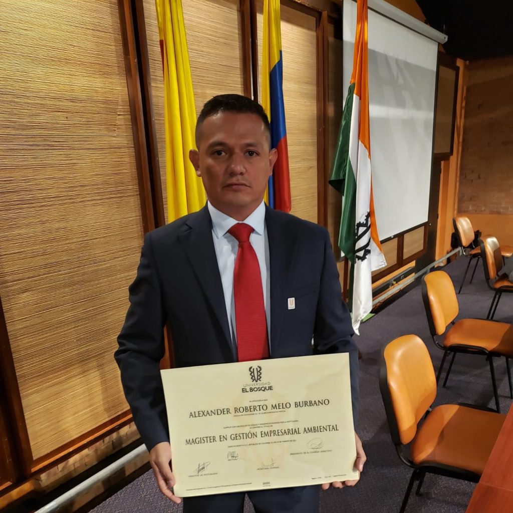 - Magíster en Gestión Empresarial – Universidad El Bosque: Esta etapa de su vida profesional destaca de manera excepcional al haberse graduado con Honores como Becario de Colciencias Colombia, un reconocimiento que subraya su excelencia intelectual y su capacidad para integrar la visión gerencial con la responsabilidad ambiental. Este logro, respaldado por el prestigio de ser becario de la entidad rectora de la ciencia en el país, consolida su preparación para liderar con idoneidad los desafíos actuales en la gestión pública y ambiental