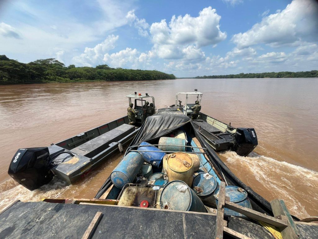 Personal del Ejercito Ecuatoriano intercepta embarcación con combustible ilegal en el río Putumayo