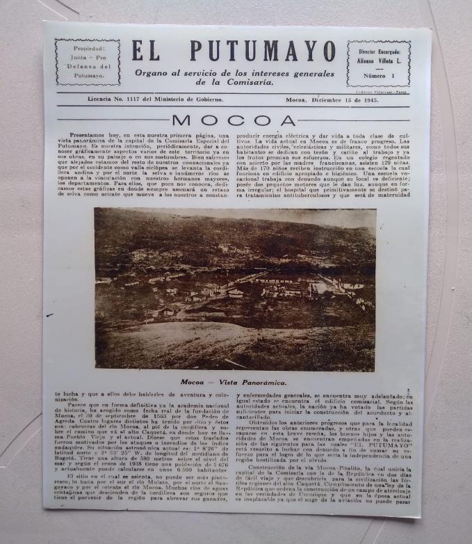 Los principios del periódico “El Putumayo” se forjaron en el municipio de Puerto Leguizamo, donde salió a la luz el 15 de diciembre de 1945 (meses después de terminarse la segunda guerra mundial y casi nueve años después de la guerra colombo – peruana) con licencia 1117 del Ministerio de Gobierno, bajo la dirección encargada del señor Alfonso Villota y la propiedad de la Junta Pro Defensa del Putumayo. Su principal fundador fue el señor Julián Antonio Acosta Zambrano (1908 – 1983)(3), quien se encontraba en este municipio viviendo. Posteriormente, se traslado hacia el municipio de Mocoa.