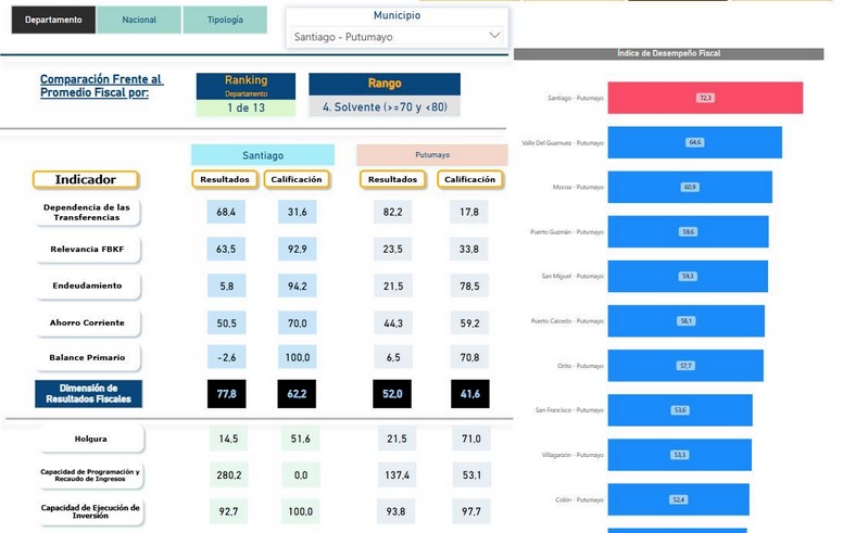 Santiago, Putumayo, líder en Desempeño Fiscal a nivel departamental