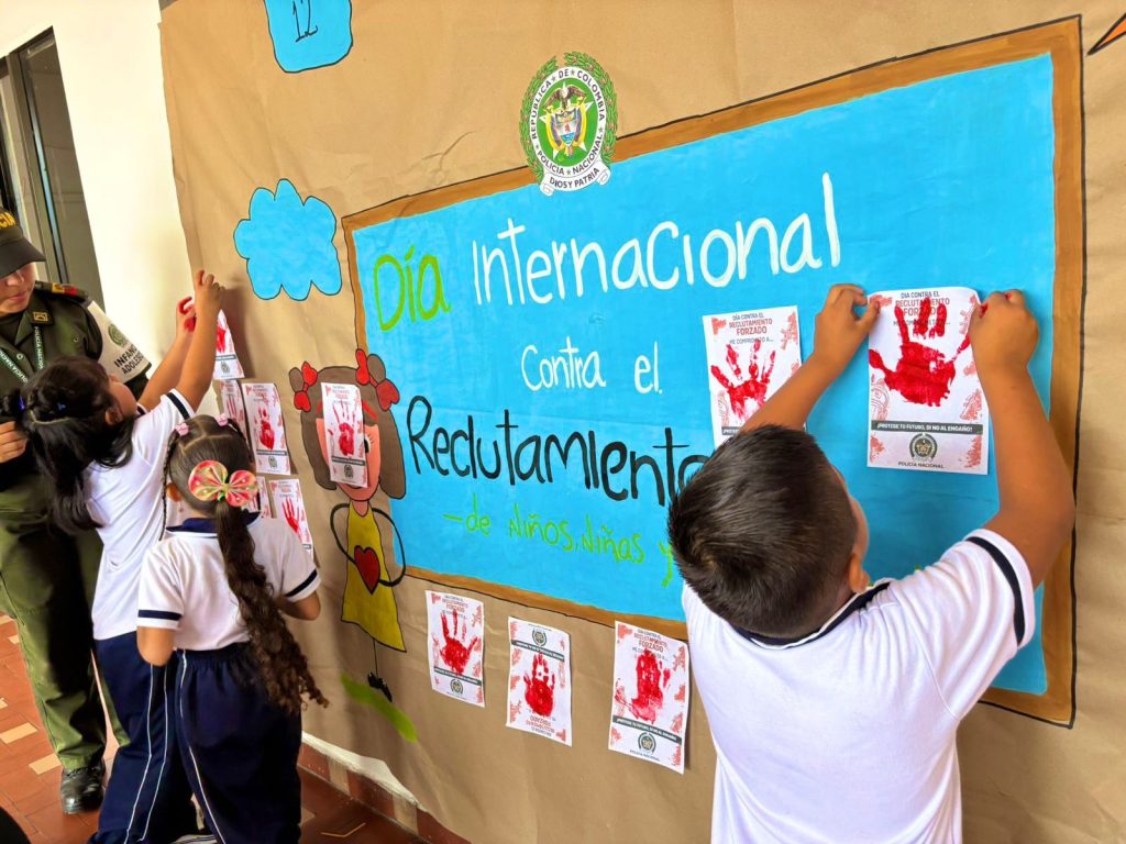 En una jornada por la defensa de la vida, el Grupo de Protección a la Infancia y Adolescencia, en articulación con el ICBF, autoridades político-administrativas y diversas modalidades del servicio de Policía, conmemoró el Día Internacional contra el Reclutamiento de Niños, Niñas y Adolescentes con acciones contundentes en todo el departamento.