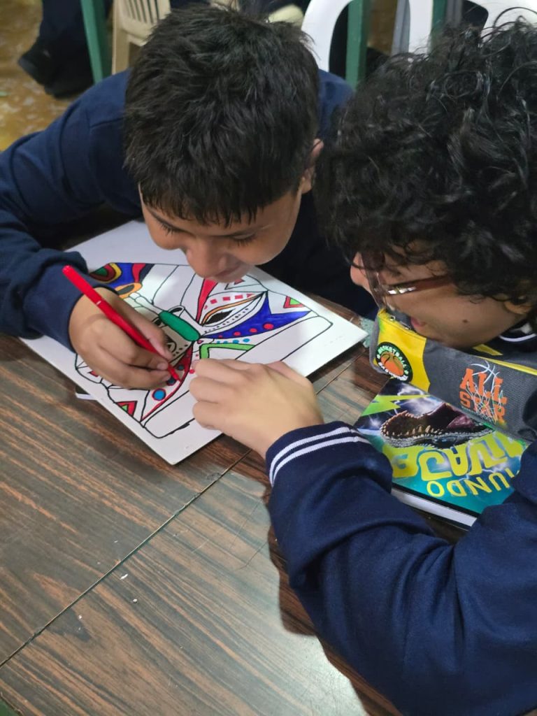 En el taller, mientras el cartón tomaba forma y el color comenzaba a delinear expresiones, emergieron preguntas inevitables: ¿qué significa hoy hablar de perdón en un territorio atravesado por el conflicto armado, por la economía extractiva y por las tensiones entre tradición y modernidad? ¿Puede una máscara convertirse en puente entre generaciones? ¿Qué lugar ocupa la escuela en este proceso?
