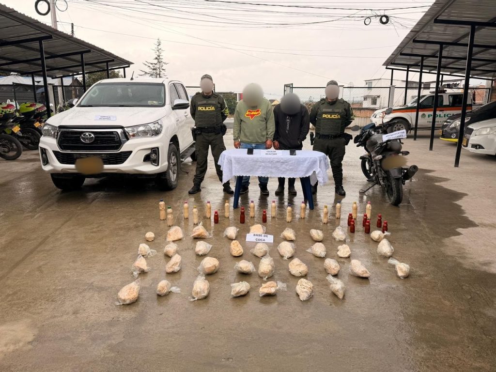 En un exitoso operativo llevado a cabo por la Seccional de Tránsito y Transporte de la Policía Nacional, fueron capturados dos hombres en flagrancia con 45 kilogramos de base de cocaína, valorada en casi 100 millones de pesos, en la vía Mocoa – Pasto, sector de La Antena, Putumayo. La captura, que se realizó en el marco de una rigurosa acción preventiva, destaca la labor de la Policía en la lucha contra el narcotráfico.