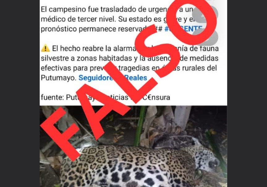 En las últimas horas circuló en varios medios digitales del Putumayo la versión de que un felino —específicamente un jaguar— habría atacado a un campesino en la zona rural de Puerto Caicedo, e incluso que el animal había sido abatido. Sin embargo, la autoridad ambiental fue enfática: no existen reportes oficiales sobre la muerte de un jaguar por este supuesto hecho, y las imágenes difundidas no corresponden a heridas ocasionadas por ataque de felino.