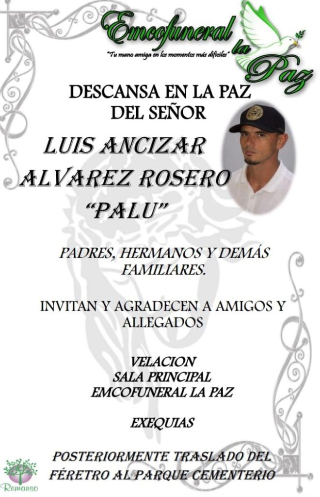 Su cuerpo está siendo velado en Encofuneral La Paz, padres hermanos y demás familiares, agradecen a amigos y allegados por su acompañamiento en este difícil momento.