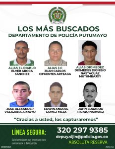 La Policía Nacional da a conocer el cartel de los criminales más buscados en el Putumayo