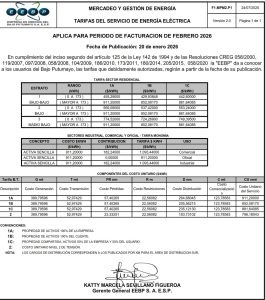 La empresa EGYT SAS E.S.P, publica el marco tarifario establecido en el mes de ENERO DE 2026 para los sistemas solares fotovoltaicos individuales (SSFVI), en cumplimiento de la resolución CREG … Leer más